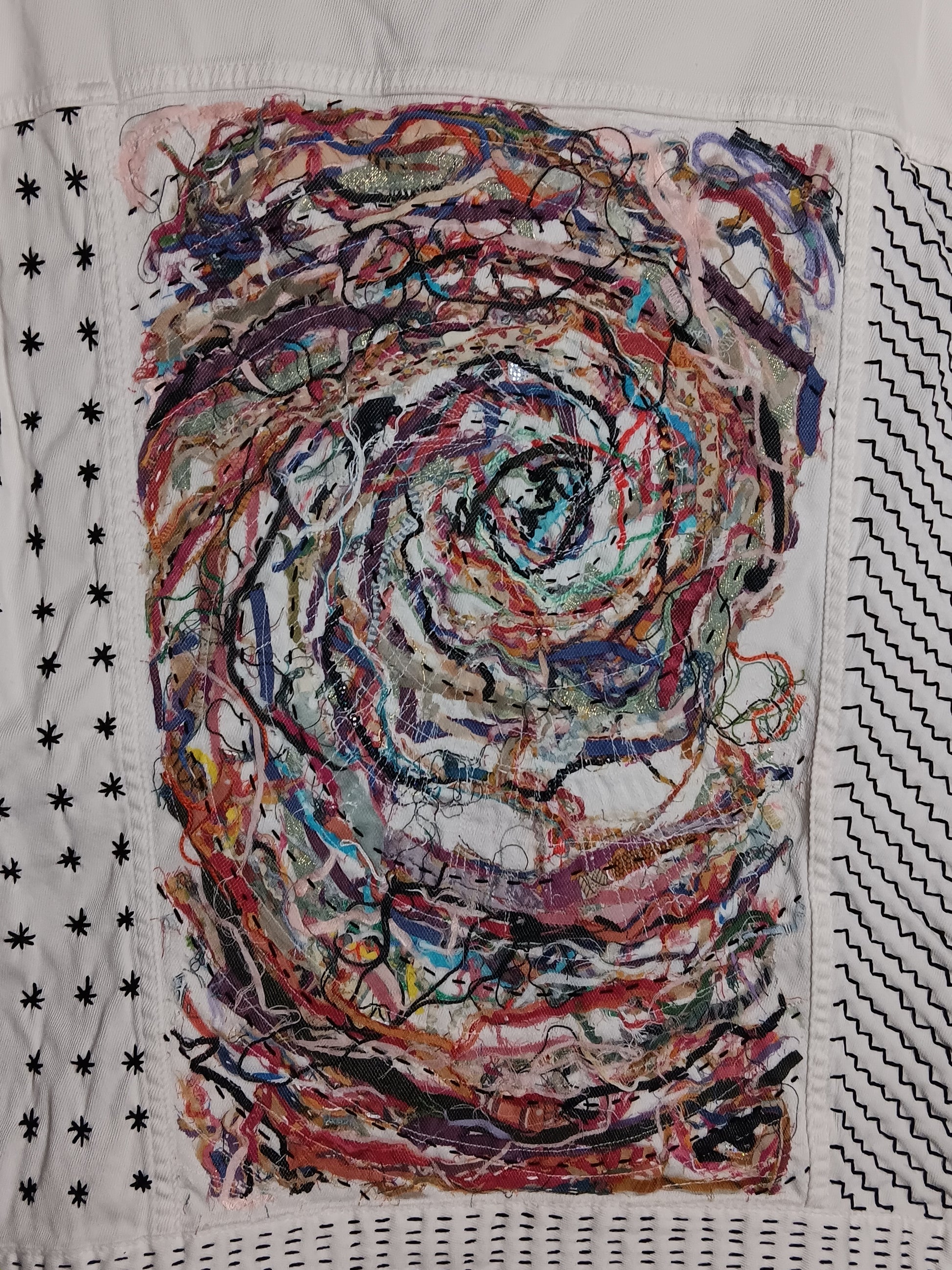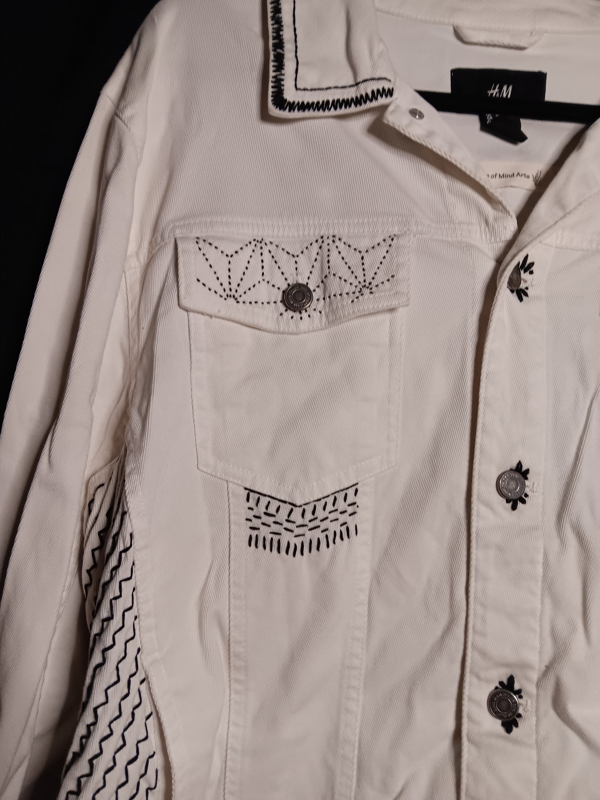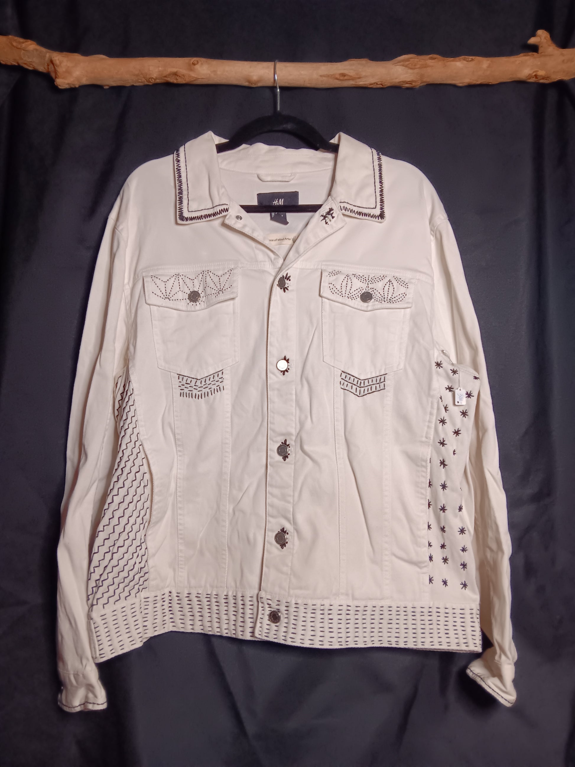 This jacket not only has the scrapple back, but is also donned with shasiko stitching. An ancient Japanese style of hand embroidery.
